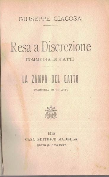 Resa a discrezione. Commedia in 4 Atti . La zampa del gatto. commedia in un atto