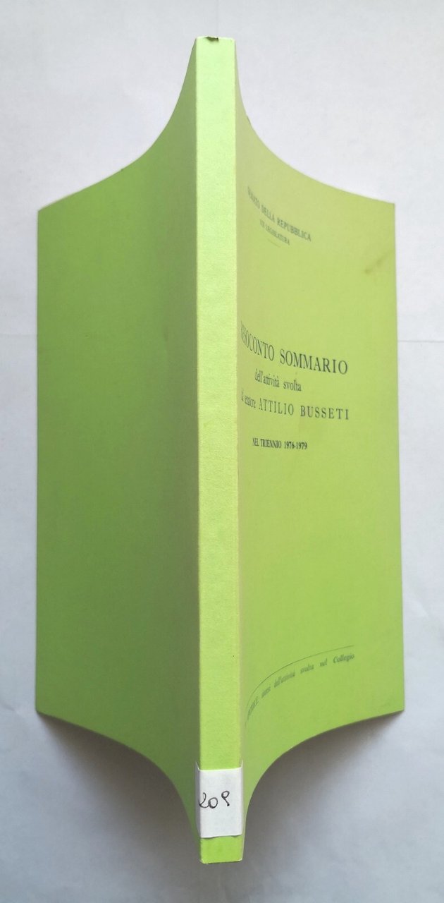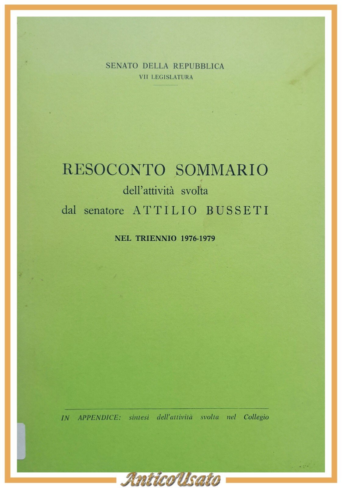 RESOCONTO SOMMARIO DELL'ATTIVITÀ SVOLTA DAL SENATORE ATTILIO BUSSETI 1976 libro