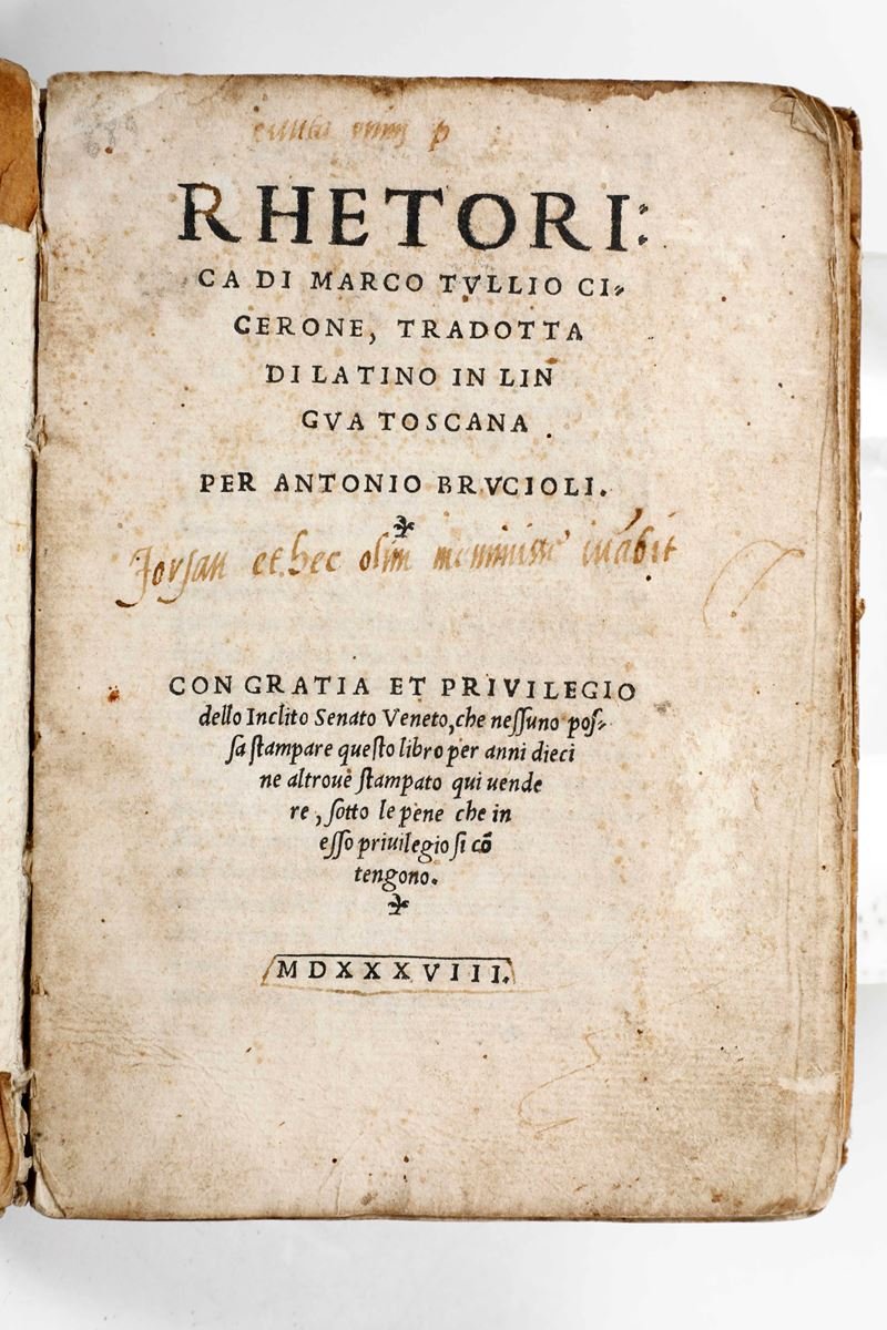 Rethorica di Marco Tullio Cicerone, tradotta di latino in lingua toscana per Antonio Brucioli...