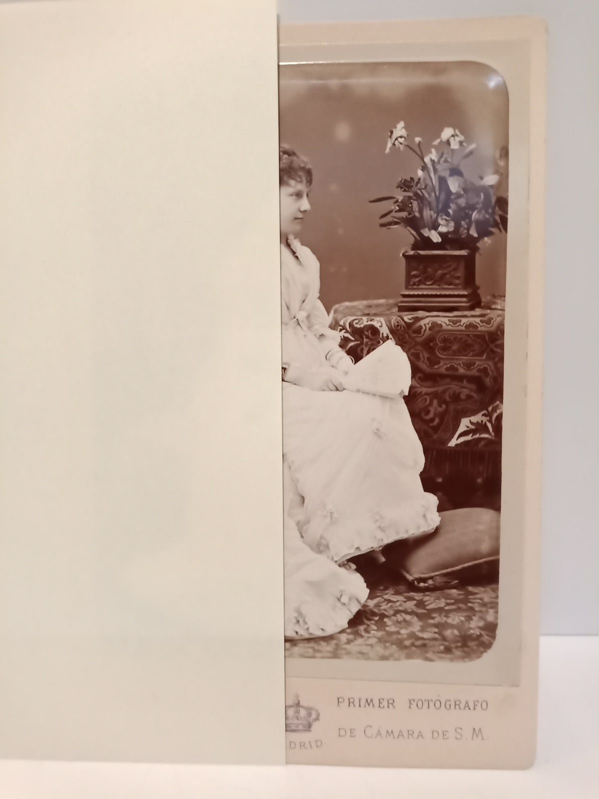 Madrid: Fernando Debás, [ca. 1877].- 14 x 10 cm. en soporte de 16,5 x 11 cm.; color sepia en brillo.- Aparece su Alteza Real sentada, vestida de blanco, con un abanico entre las manos. Era la sexta hija de la reina y la décima de los hijos nacidos de la soberana (varios de los cuales murieron prematuramente). Al pie del soporte nombre y datos del fotógrafo madrileño, y en el verso anagrama y slogan del estudio fotográfico.* POLÍTICA ESPAÑOLA DESDE 1833 A 1936