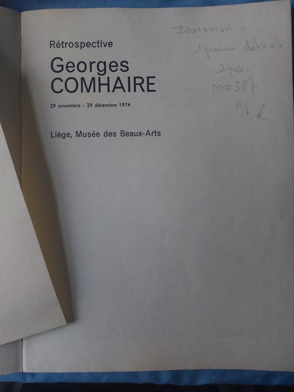 Rétrospective Georges Comhaire 29 novembre - 29 décembre 1974 Liège Musée des Beaux-Arts