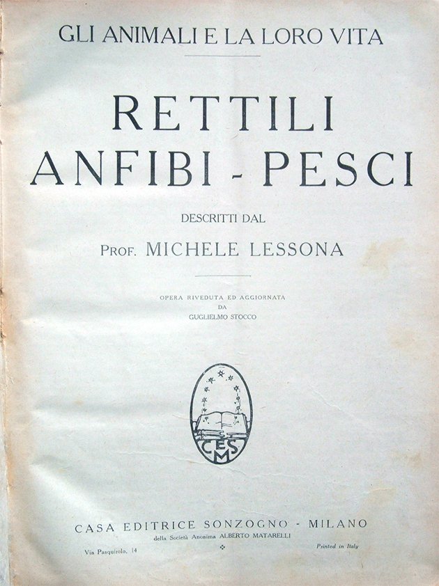Rettili, Anfibi, Pesci descritti dal Prof. Michele Lessona. Opera riveduta ed aggiornata da Guglielmo Stocco