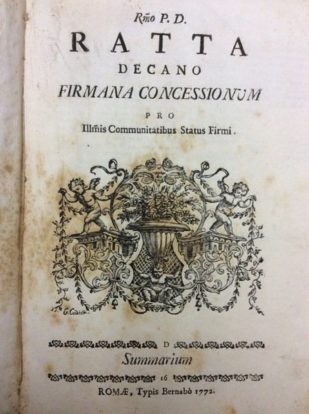 REVER.MO P.D. RATTA DECANO FIRMANA CONCESSIONUM PRO ILLUSTRISS. COMMUNITATIBUS STATUS FIRMI: SUMMARIUM.