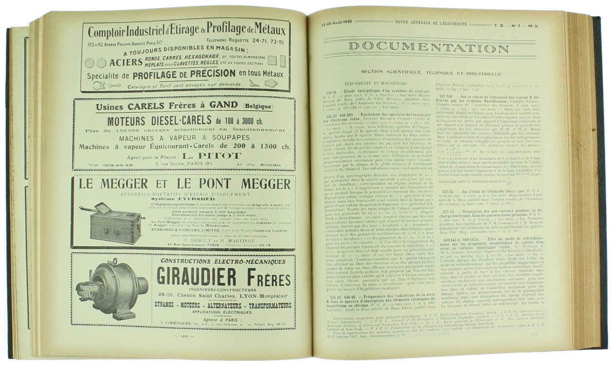 REVUE GENERALE DE L'ELECTRICITE' - DOCUMENTATION - Section scientifique, technique et industrielle, 1919 - 1921.