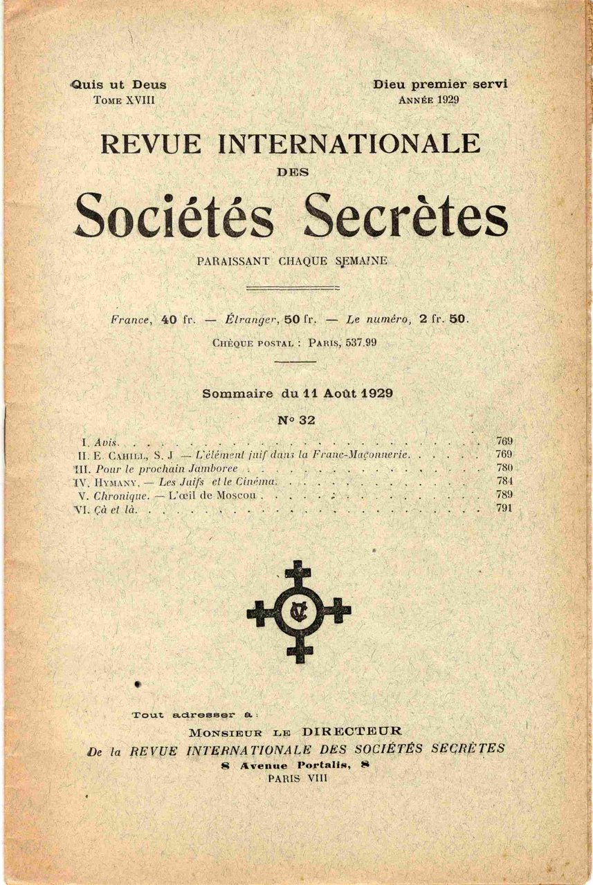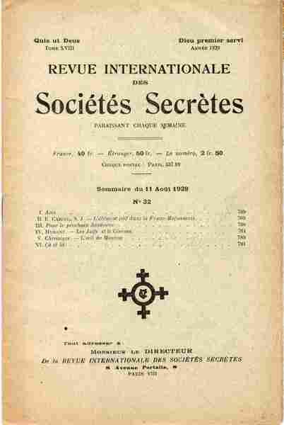 Revue internationale des sociétés secrètes. Tome XVIII, année 1929, n° 28