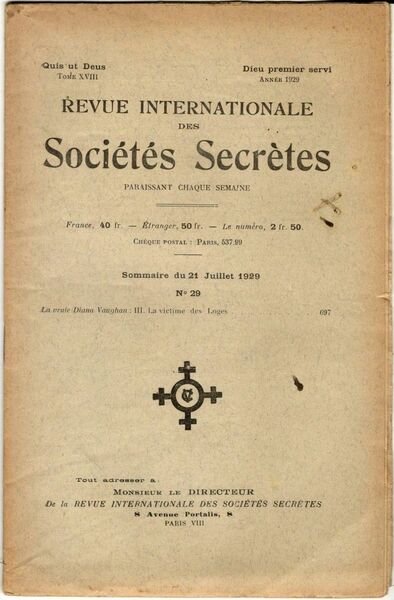 Revue internationale des sociétés secrètes. Tome XVIII, année 1929, n° 29