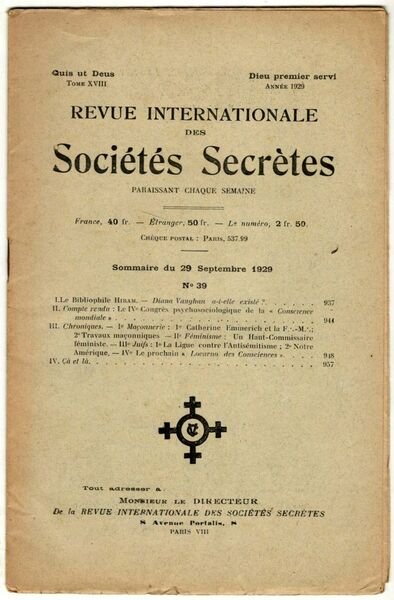 Revue internationale des sociétés secrètes. Tome XVIII, année 1929, n° 39