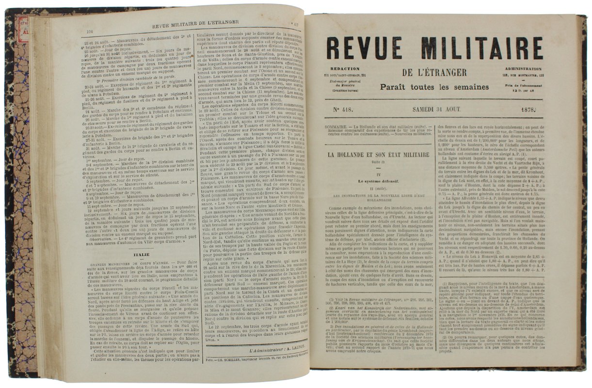 REVUE MILITAIRE DE L'ETRANGER - 1878. 1er semestre (N. 384 à 409) - 2me semestre (N. 410 à 435)