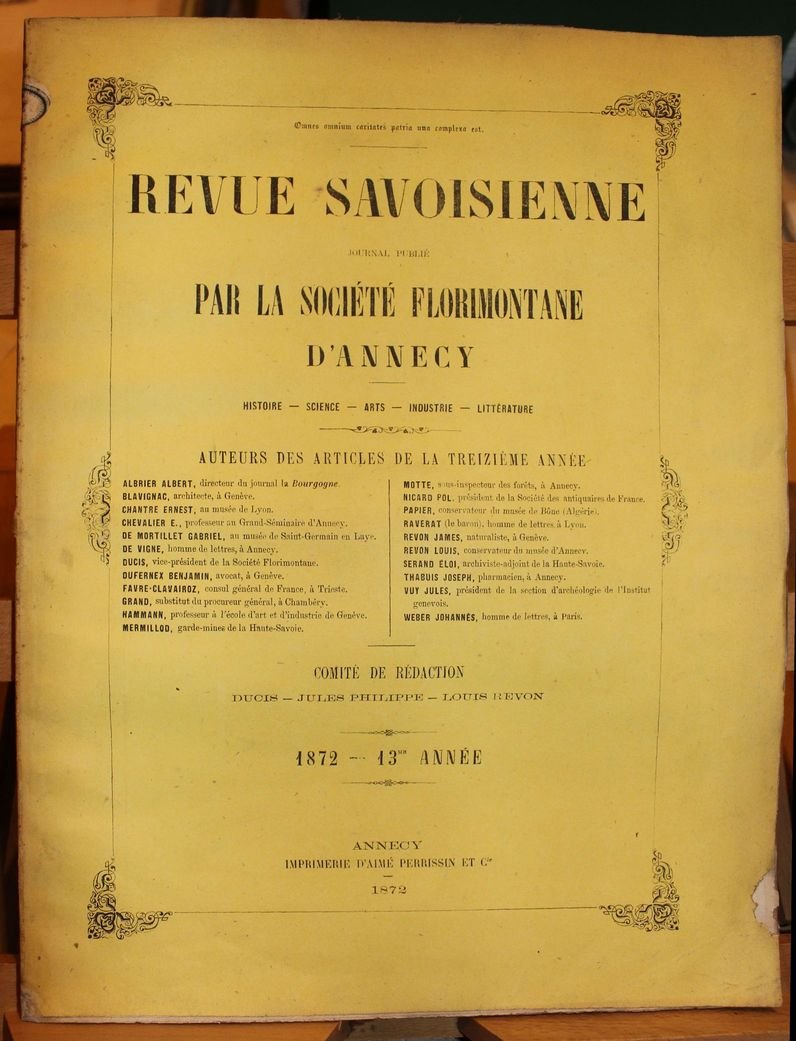 Revue Savoisienne. Journal publié par l'Association Florimontane d'Annecy. Histoire - Sciences - Arts - Industrie - Littérature. 1872. 13me année