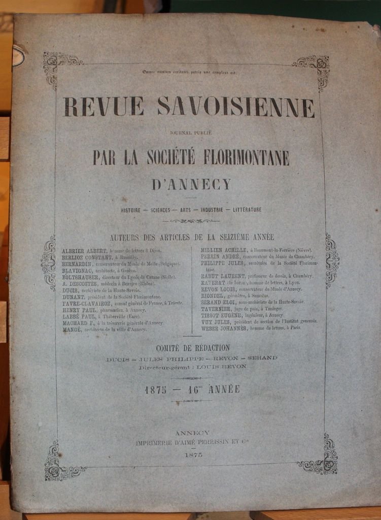 Revue Savoisienne. Journal publié par l'Association Florimontane d'Annecy. Histoire - Sciences - Arts - Industrie - Littérature. 1875. 16me année