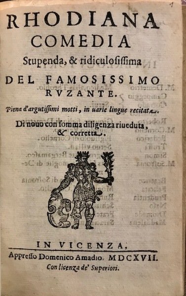 Rhodiana. Comedia stupenda, & ridiculosissima del famosissimo Ruzante. Piena d’argutissimi motti, in varie lingue recitata. Di novo con somma diligenza riveduta, & corretta