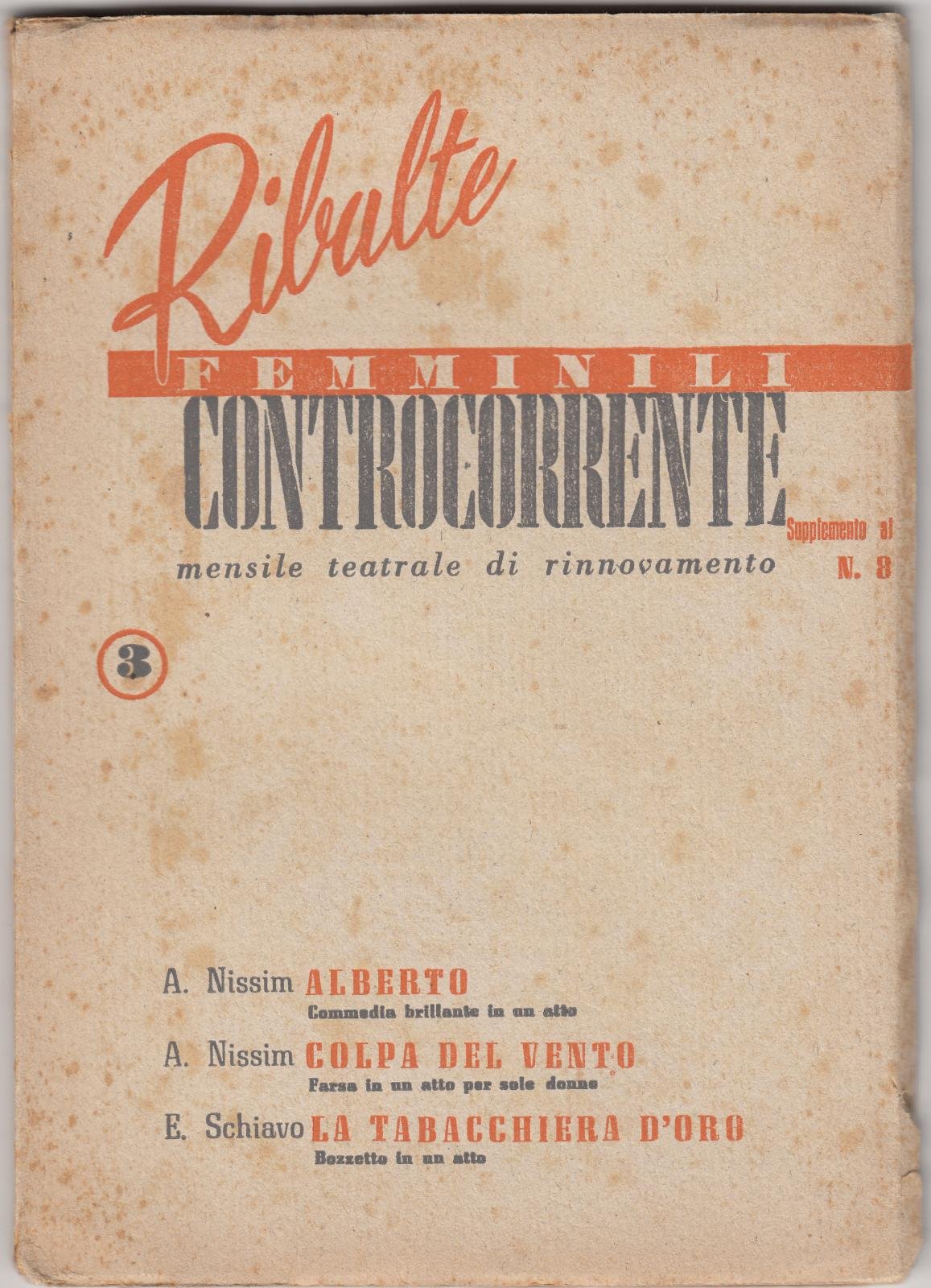 RIBALTE FEMMINILI-CONTROCORRENTE-MENSILE TEATRALE DI RINNOVAMENTO-SUPPL. AL N.8