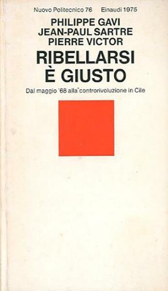 324 p. ; 18 x 11 cm. Nuovo politecnico, 76. Questo volume nasce dalle lunghe conversazioni che, tra il novembre del 1972 e il marzo del 1974, Jean-Paul Sartre ha avuto con Pierre Victor, giovane dirigente di un'organizzazione comunjista maoista, e con Philippe Gavi, giornalista di «Liberation». I tre interlucotori hanno discusso e si sono confrontati sui principali avvenimenti dell'attualità politica: gli scioperi alla Renault, le nuove lotte socilai, l'esperienza dell'autogestione della LIP, il golpe cileno, l'URSS e Solženicyn. Sartre ha avuto modo di analizzare con ampiezza di dettagli la sua evoluzione politica, da «compagno di strada» dei comunisti alla rottura col partito dopo iil maggio '68 e l'invasione della Cecoslovacchia, sino ai suoi recenti rapporti con la nuova sinistra. In quest'ottoca il libro offre una preziosa e spesso inedita testimonianza della biografia culturale e politica di Srtre, illuminandone dall'interno i vari momenti. Titolo originale dell'opera: «On a raison de se révolter». Traduzione di Alfonso Berardinelli. Brossura editoriale, coperta in cartoncino flessibile plastificato opaco e colorato (b/n e rosso). Codice libreria 6469.