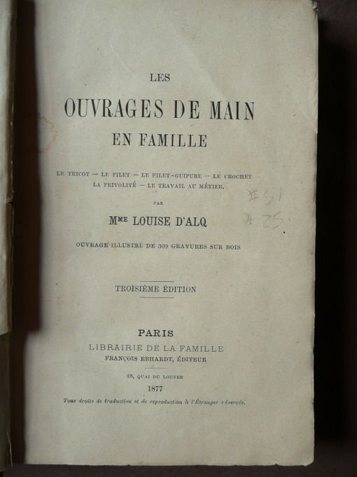 Ricamo Tricot Filet Manuale 1877 D'Alq Incisioni Ouvrages main Croquet Metier