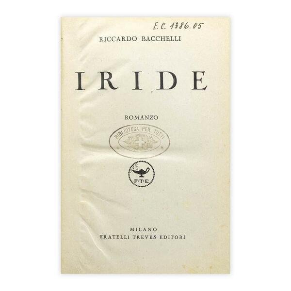 Autore: Riccardo Bacchelli Titolo: Iride Edizione: Fratelli Treves Editori - Milano 1937 Dimensioni: 12,5 x 19 cm c.a. Peso: 0,421 kg  Pagine: 405 Copertina: Cartonato Condizioni: Buone come da foto