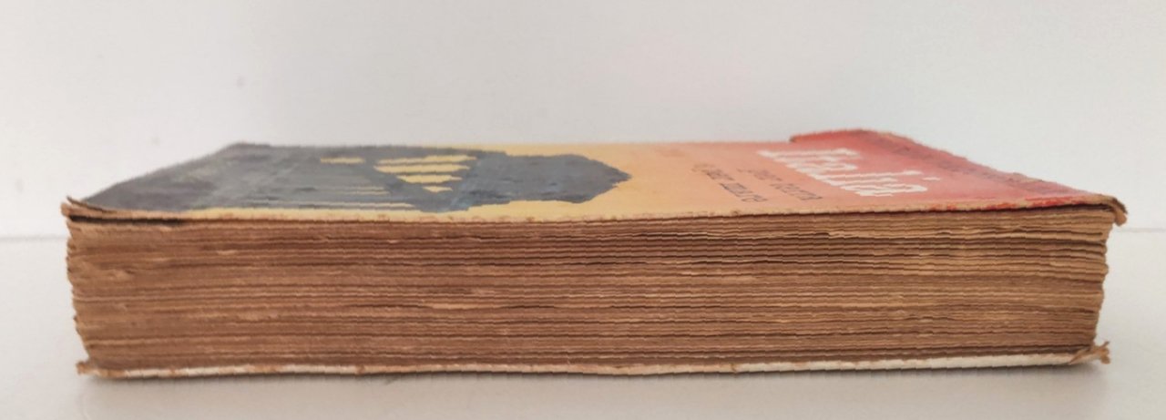 sovraccoperta editoriale in condizioni accettabili con strappi pieghe e mancanze ai margini dei piatti e del dorso, legatura morbida editoriale leggermente brunita con piccoli strappi e pieghe ai margini del dorso, tagli bruniti irregolari, interno in discreto stato brunitura margine esterno delle pagine, numero pagine 460 dimensioni cm 19,7 * 13