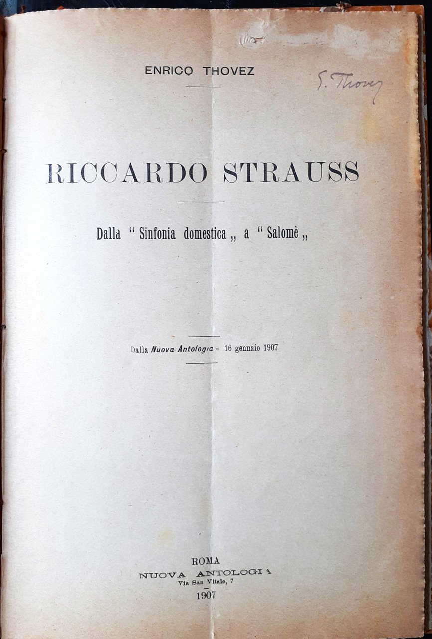Riccardo Strauss Dalla "sinfonia domestica" a "Salomé" dalla Nuova Antologia 1907