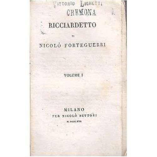 RICCIARDETTO volume 1 di Niccolò Forteguerri 1830 Nicolò Bettoni libro antico