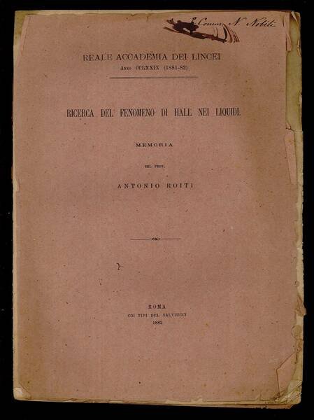 Opuscolo vintage. Reale Accademia dei Lincei Anno CClXXIX. Copertina licenziata, strappi. Segni di biro in copertina. Tavola illustrata in ultima pagina. Usura da scaffale. Evidente segno del tempo.