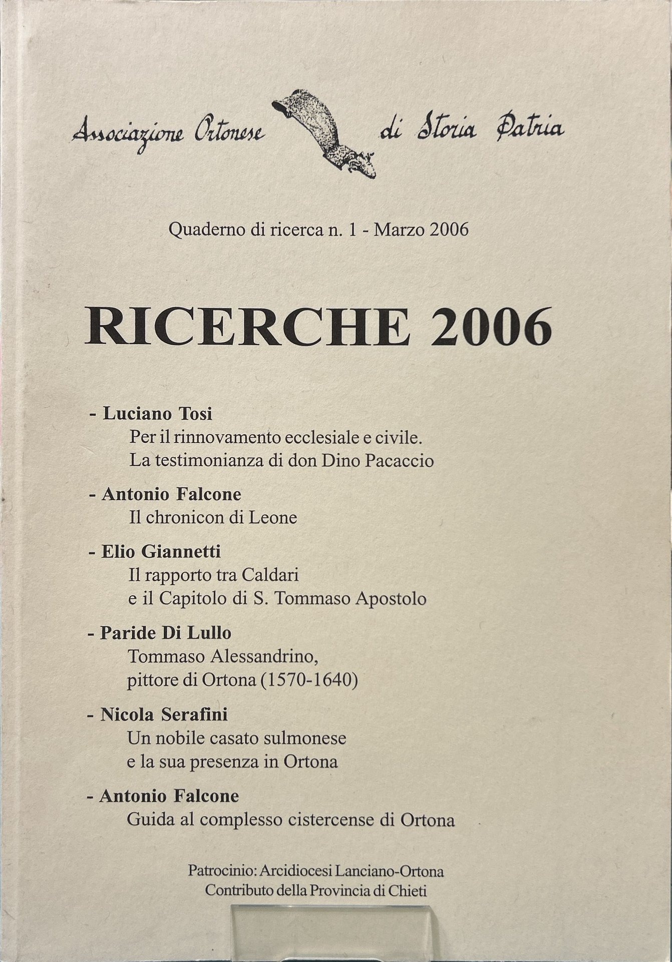 Cop. in brossura; Associazione ortonese di storia patria 2006; con ill. in bianco e nero; buona copia