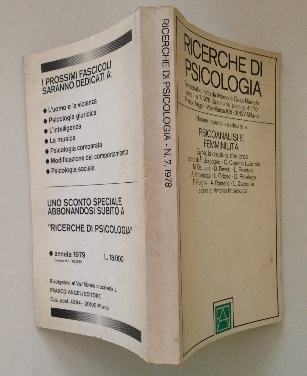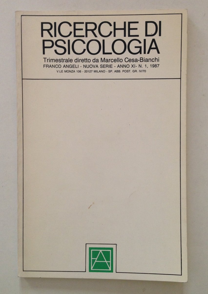 Ricerche di Psicologia Franco Angeli 2 Numeri Anno II N 7 1978 Anno XI N 1 1987