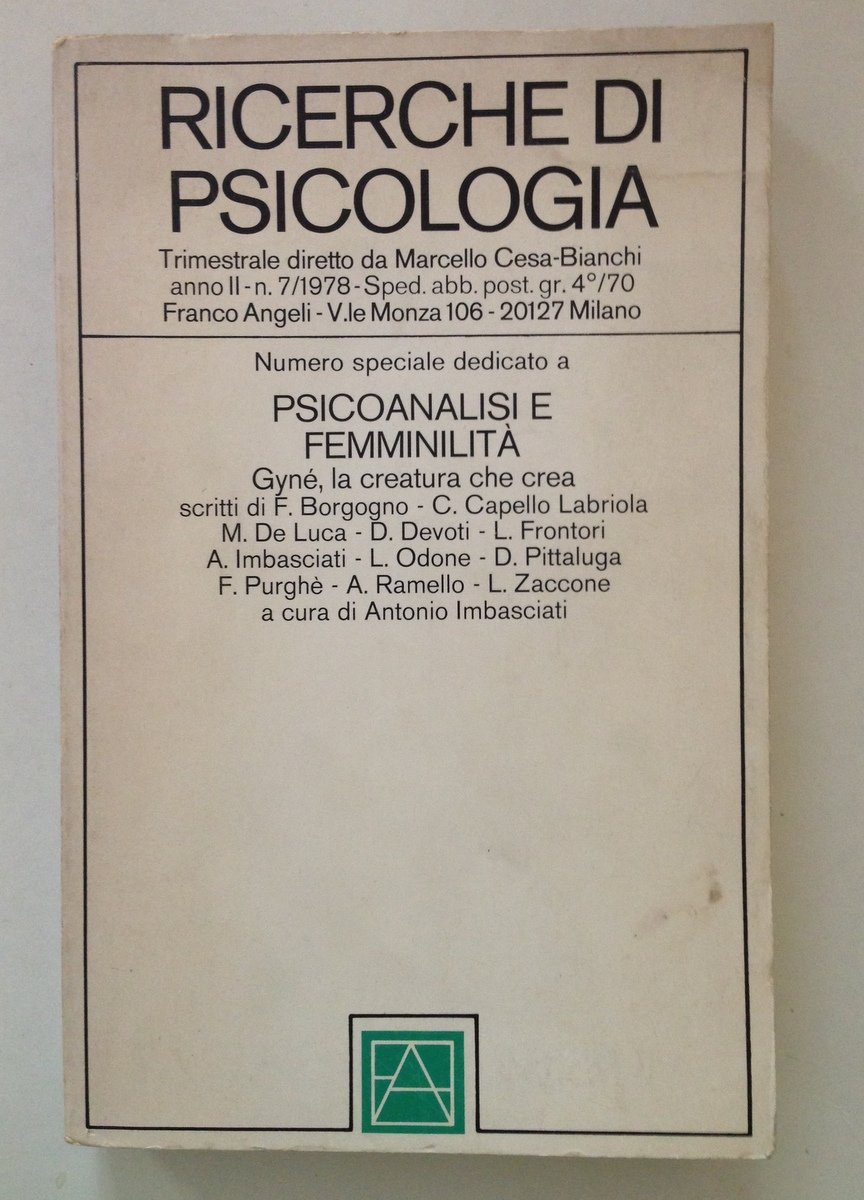 Ricerche di Psicologia, Trimestrale diretto da Marcello Cesa-Bianchi Psicoanalisi e femminilità Anno II - N. 7/1978 Anno XI - N. 1/1987 Franco Angeli 1978 (n.7), 1987 (n.1), cm 22x14, n.7 pp. 279, n.1 pp. 112, cartoncino ed., 2 numeri. Condizioni di conservazione Esemplari in buone condizioni con leggere tracce d'uso. SETT104.L9877 MT