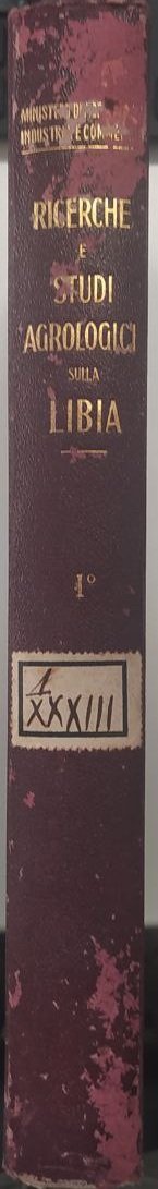 RICERCHE E STUDI AGROLOGICI SULLA LIBIA: Volume 1. LA ZONA DI TRIPOLI. Tutto il pubblicato. - Relazione del primo viaggio della Commissione nominata dall'On. Francesco Nitti, Ministro d'Agricoltura.