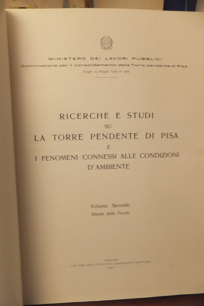 RICERCHE E STUDI SU LA TORRE PENDENTE DI PISA E FENOMENI CONNESSI ALLE CONDIZIONI D'AMBIENTE