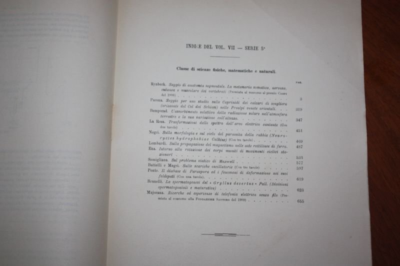 RICERCHE ED ESPERIENZE DI TELEFONIA ELETTRICA SENZA FILO QUIRINO MAJORANA TIP.ACCADEMIA DEI LINCEI 1910, , CODICE 4281, DA PAG 656, A PAG 697, CON NUMEROSE FIGURE INTERCALATE NEL TESTO
