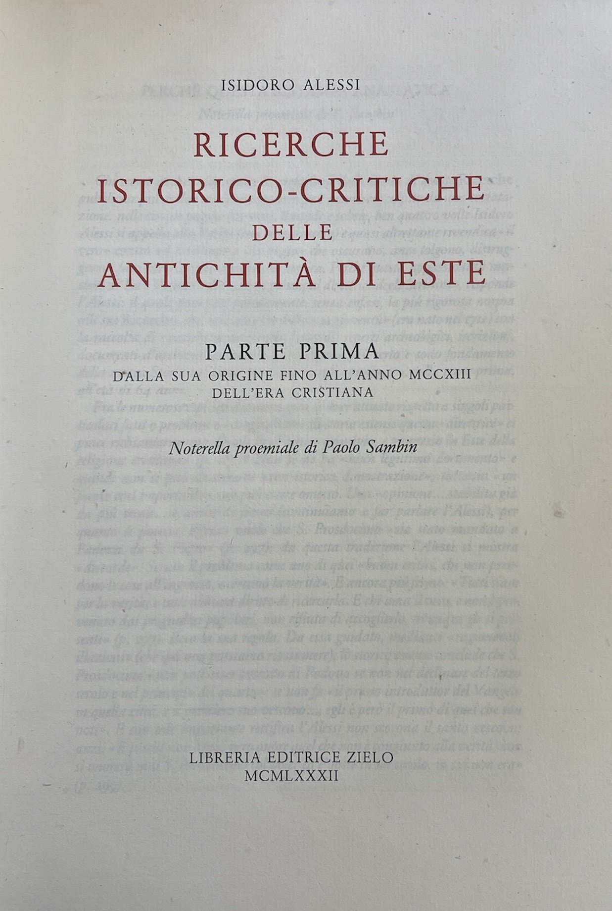 RICERCHE ISTORICO-CRITICHE DELLE ANTICHITÀ DI ESTE