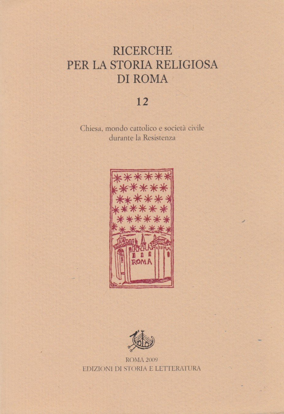 Ricerche per la storia religiosa di Roma, 12. Chiesa, mondo cattolico e società civile durante la Resistenza. Edizioni di Storia e Letteratura, 2009In-8 (Cm 23 x 16), pp. 523, brossura editoriale illustrata. COME NUOVO