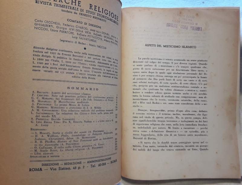 RICERCHE RELIGIOSE-RIVISTA DI STUDI STORICO.RELIGIOSI .VOL. XX- GEN-DIC 1949(LUGLIO 1950)