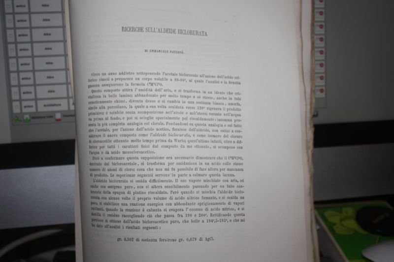 Cod 2693, , RICERCHE SULL'ALDEIDE BICLORURATA, DI EMMANUELE PATERNO', DA PAG 127 A PAG 129