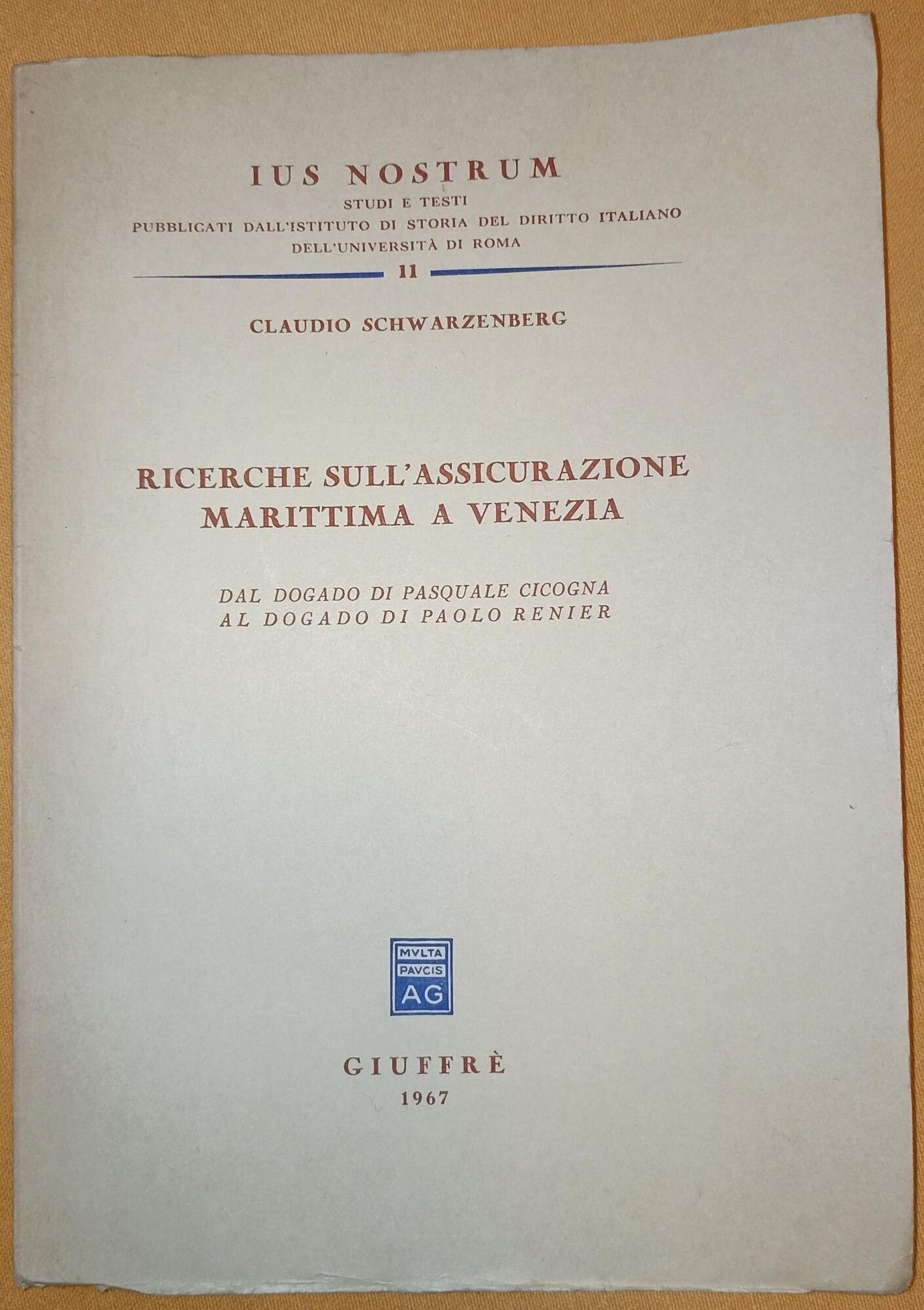 Ricerche sull'assicurazione marittima a Venezia dal dogado di Pasquale Cicogna al dogado di Paolo Revier