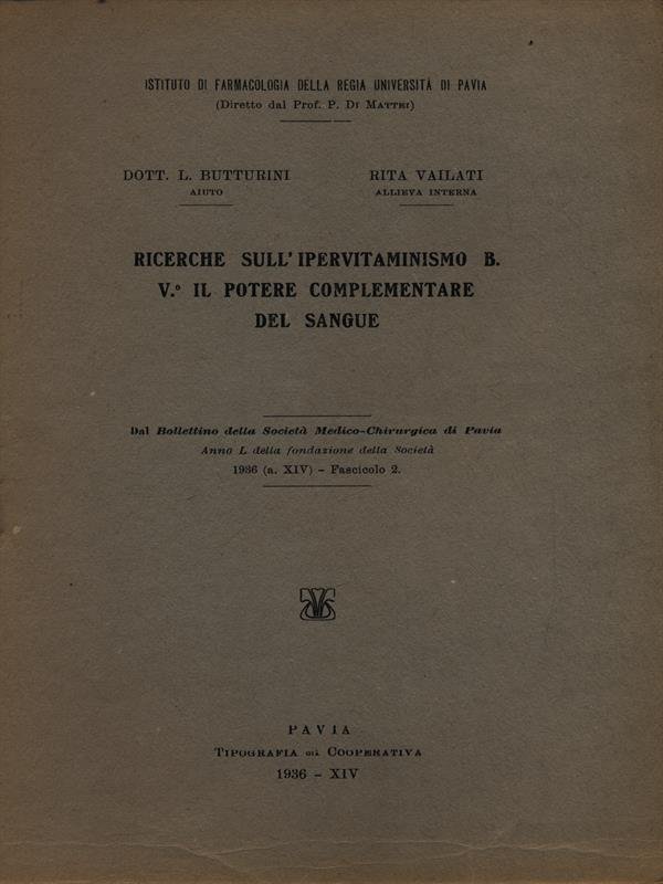 Ricerche sull'ipervitaminismo B. V il potere complementare del sangue - Estratto