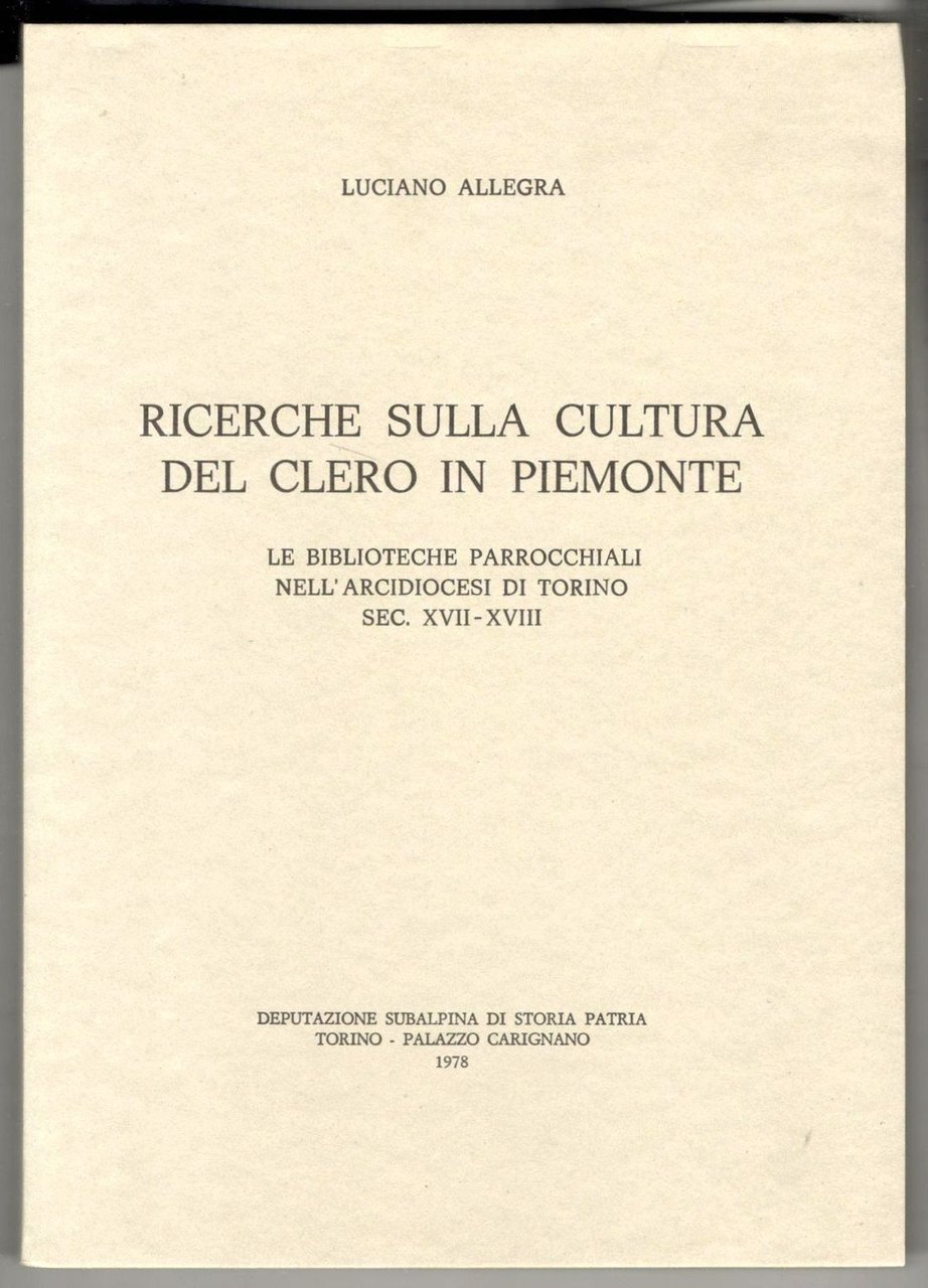 Ricerche sulla cultura del clero in Piemonte. Le biblioteche parrocchiali nell'Arcidiocesi di Torino sec. XVII-XVIII