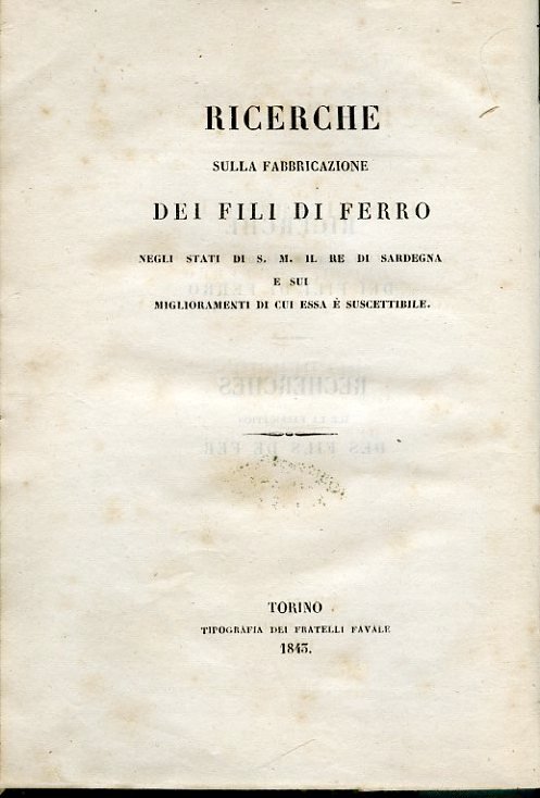Ricerche sulla fabbricazione dei fili di ferro negli Stati di S.M. il Re di Sardegna e sui miglioramenti di cui essa è suscettibile - Recherches sur la fabrication des fils de fer dans les États de S. M. le Roi de Sardaigne et sur les améliorations.