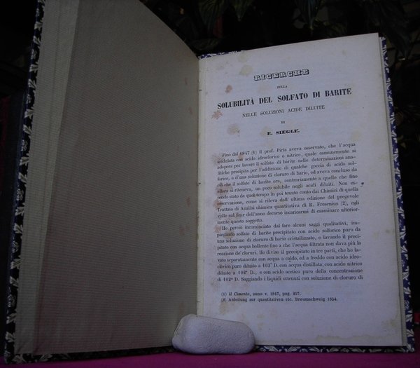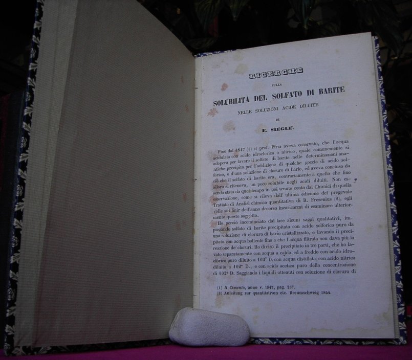 RICERCHE SULLA SOLUBILIT DEL SOLFATO DI BARITE, unito con SULLA PREPARAZIONE DELLO ZUCCHERO D'UVA, allo stato di Chimica Purezza.