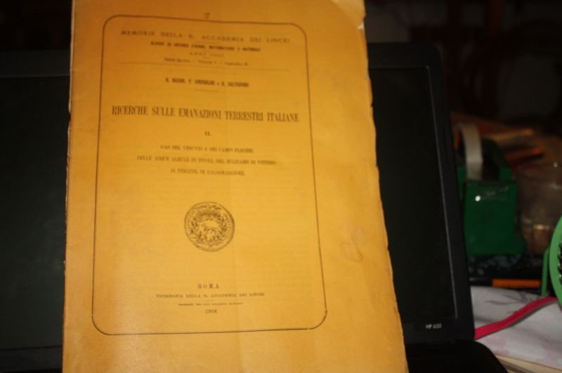 RICERCHE SULLE EMANAZIONI TERRESTRI ITALIANE GAS DEL VESUVIO E DEI CAMPI FLEGREI DELLE ACQUE ALBULE DI TIVOLI DEL BULICAME DI VITERBO DI PERGINE DI SALSOMAGGIORE 1904