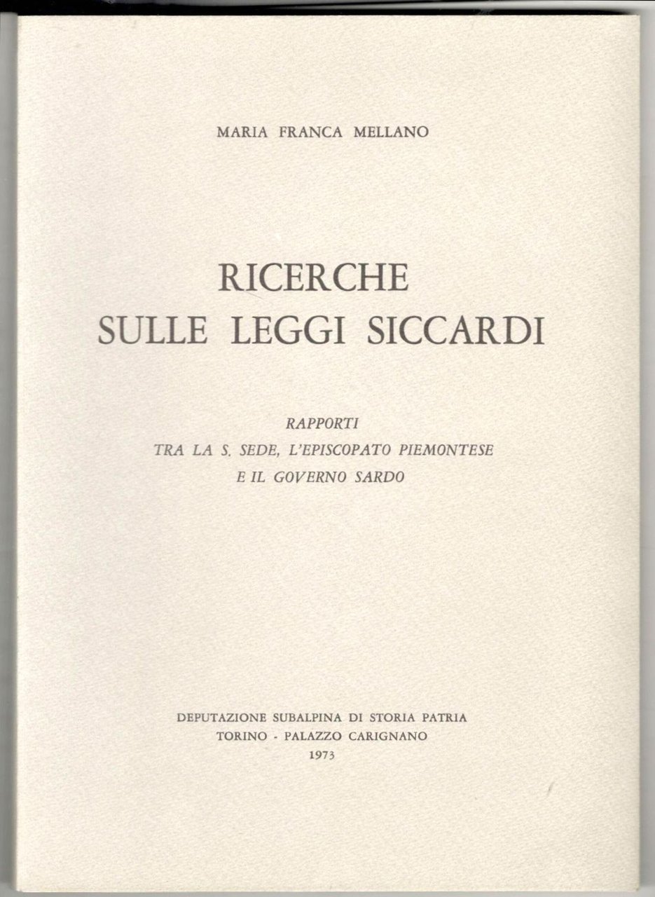 Ricerche sulle Leggi Siccardi. Rapporti tra la S. Sede, l'episcopato piemontese e il governo sardo