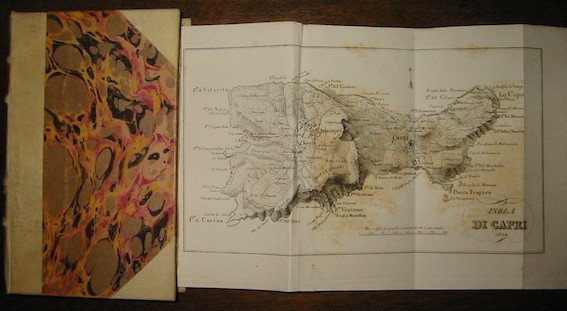 8vo (cm. 18), 2 cc.nn., 272 pp. con una tav. f.t. più volte rip. (’Isola di Capri’). Legatura inizi ‘900 in mz. pergamena con angoli. Nervi e titoli oro su doppio tassello in pelle al ds. Bross. ed. conservate all’interno. Ottimo esemplare in barbe. Raro. Lozzi I, 1055.