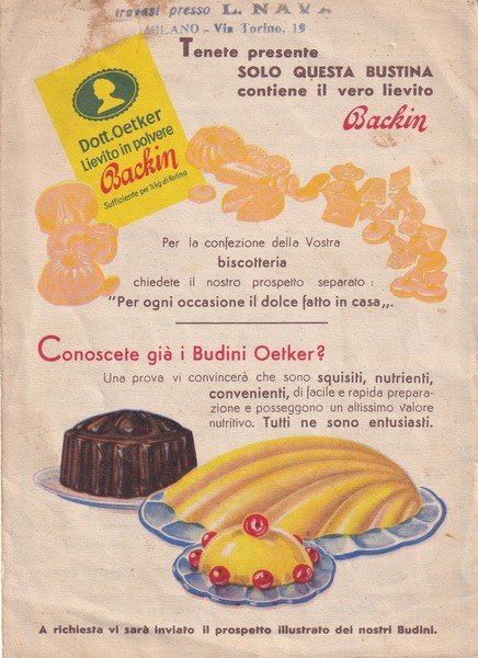 Ricettario "Ricette OETKER - Il lievito in polvere Backin. Anni'30