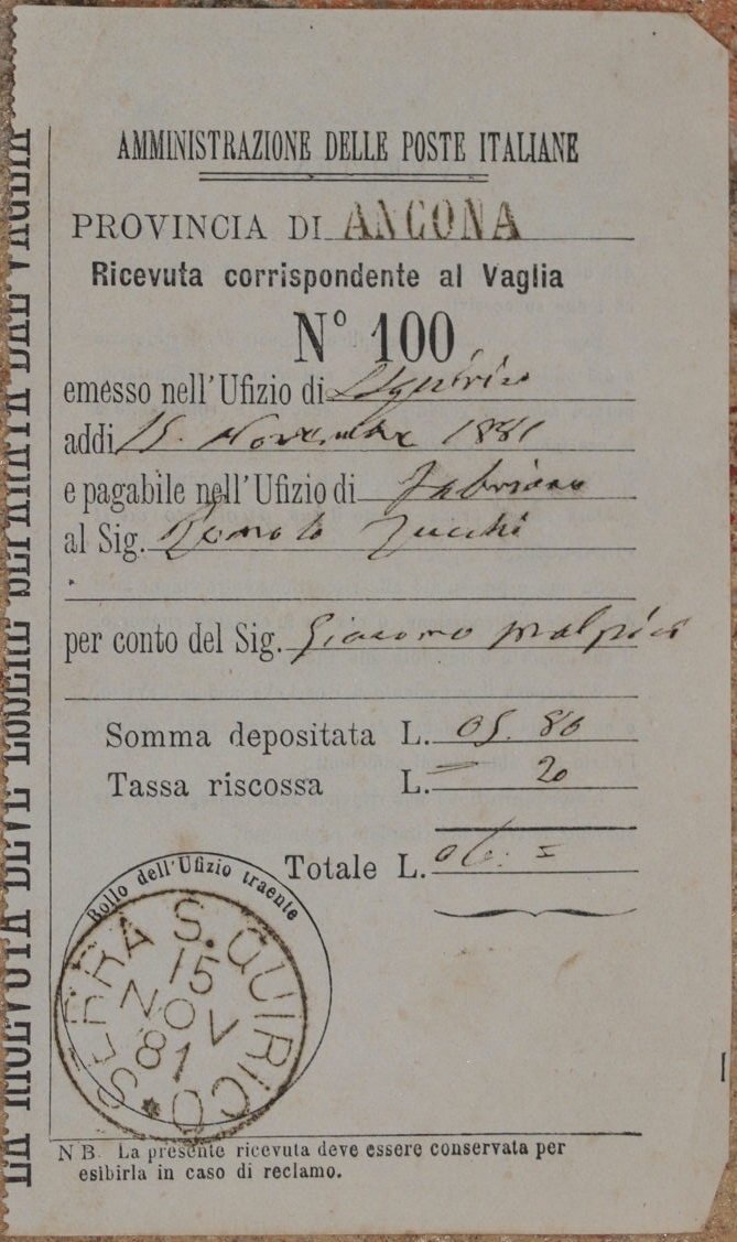 RICEVUTE VAGLIA POSTALI 1881 - 1932
