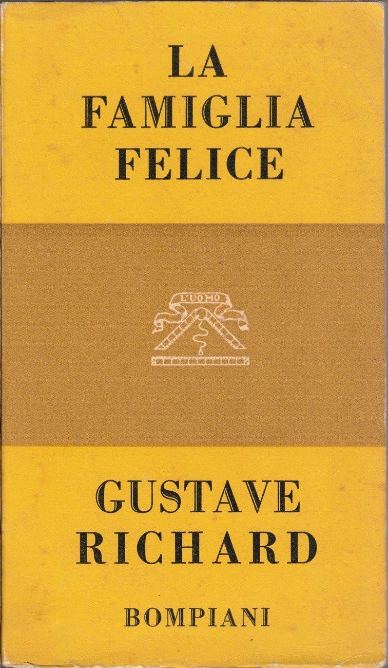 Gustave Richard, La famiglia felice, Bompiani (Soc. An. Ed. Valentino Bompiani e C.), Milano 1950, pp. 226, 20, br. ed. Collana L’uomo, vol. 3. Titoli originali: Das geschlechtsleben in der ehe – Sexuelle aufklarung und erziehung – Die eifersucht. Traduzione di Gustavo Barbensi. Indice: Prefazione – La vita sessuale nel matrimonio – Istruzione ed educazione sessuale – La gelosia. All’interno del volume, conservato articolo dal titolo La famiglia felice. Psicologia e psicanalisi del matrimonio, di Antonio Miotto (estratto da Il Tempo, s.d., ma 1950 circa). Ordinarie tracce d’uso, minime fioriture, tenue brunitura della carta, per il resto esemplare ben conservato, con brossura solida e interno ben tenuto.