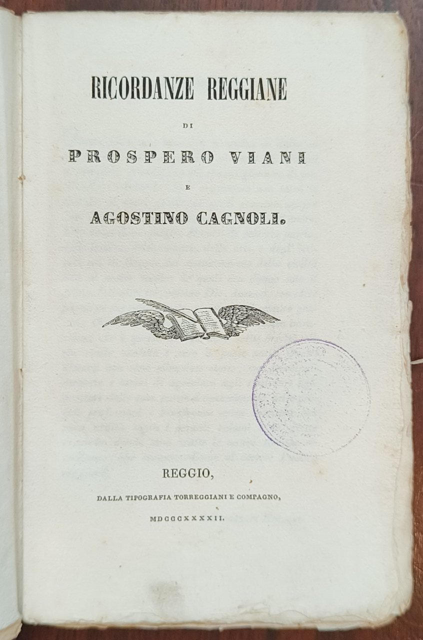 Prospero Viani, Agostino Cagnoli, Ricordanze reggiane, Reggio Emilia, Tipografia Torreggiani e Compagno, 1842