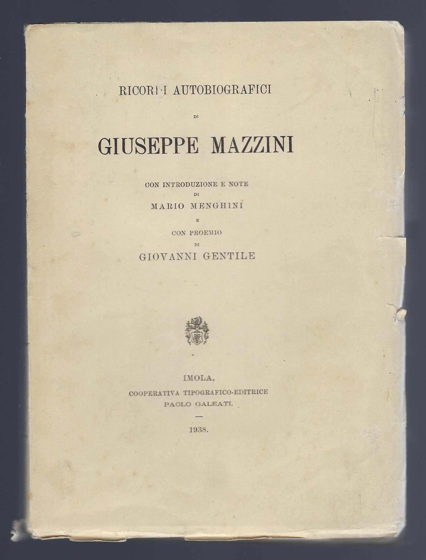 Ricordi autobiografici di Giuseppe Mazzini
