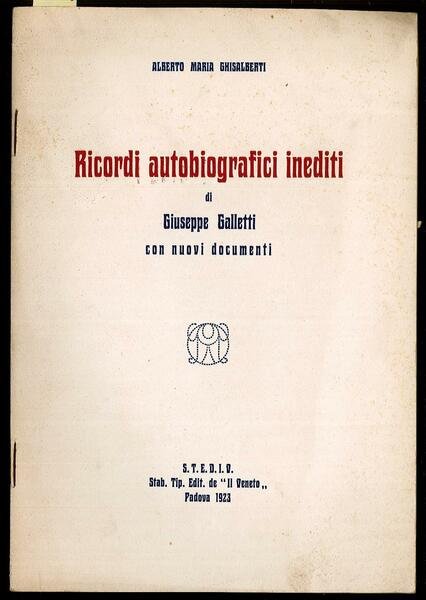 Ricordi autobiografici inediti di Giuseppe Galletti