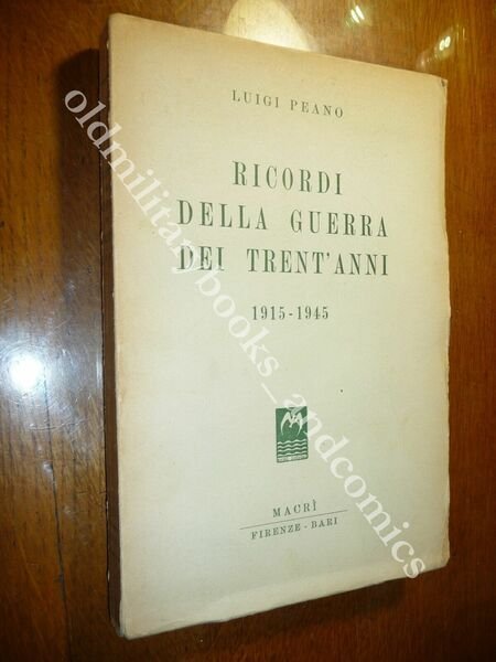 RICORDI DELLA GUERRA DEI TRENT'ANNI 1915-1945 LUIGI PEANO DEDICA DELL'AUTORE