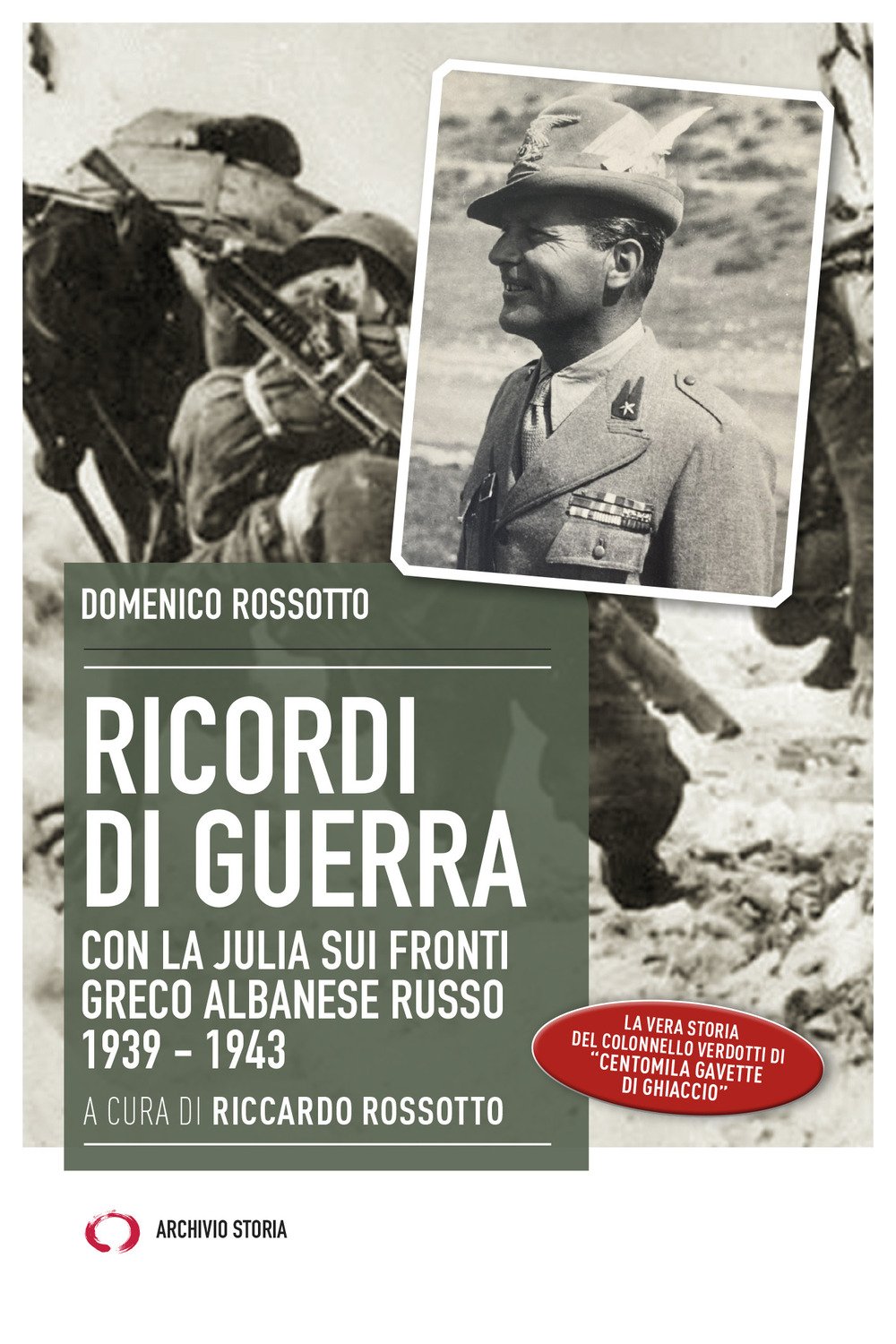 Questo volume raccoglie, integrandole con note esplicative, commenti e schede di approfondimento, le memorie militari di Domenico Rossotto, ufficiale effettivo durante la guerra '13-18. Con il grado di tenente colonello ha comandato il gruppo "Conegliano" del 3° Artiglieria Alpina "Julia" durante la campagna di Albania, Grecia e sul fronte russo, guidando i superstiti del Gruppo facente parte della colonna Rossotto nella ritirata del Don. Con lo pseudonimo di Colonello Verdotti è uno dei protagonisti del libro "Centomila gavette di ghiaccio" di Giulio Bedeschi.