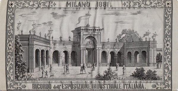 Ricordo dell'Esposizione Industriale Italiana Milano 1881. Ricordo pubblicitario in seta